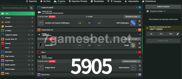 O 5905 oferece uma grande seleção de opções de apostas em e-sports com probabilidades competitivas